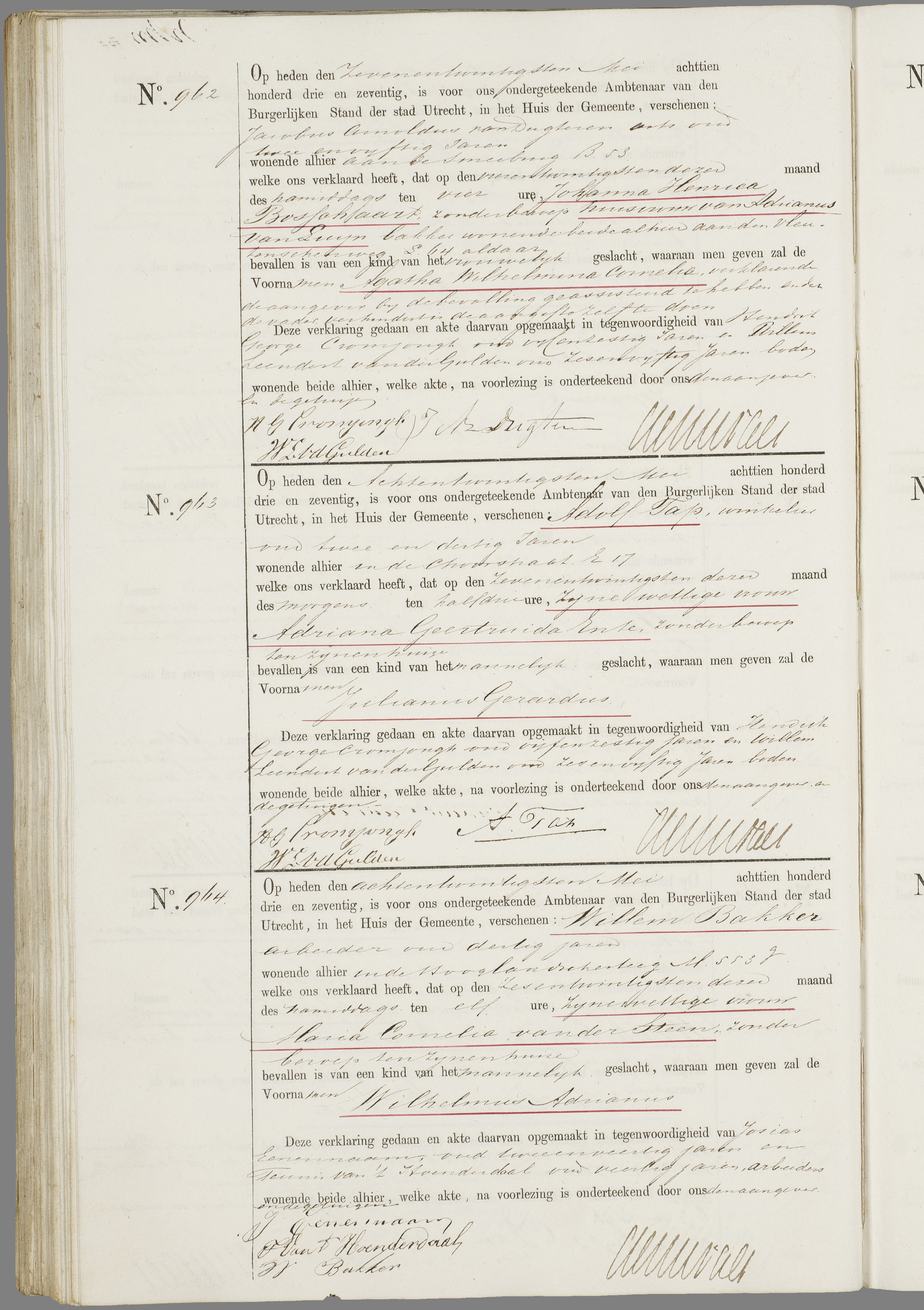 Wilhelmus Adrianus Bakker geboorte