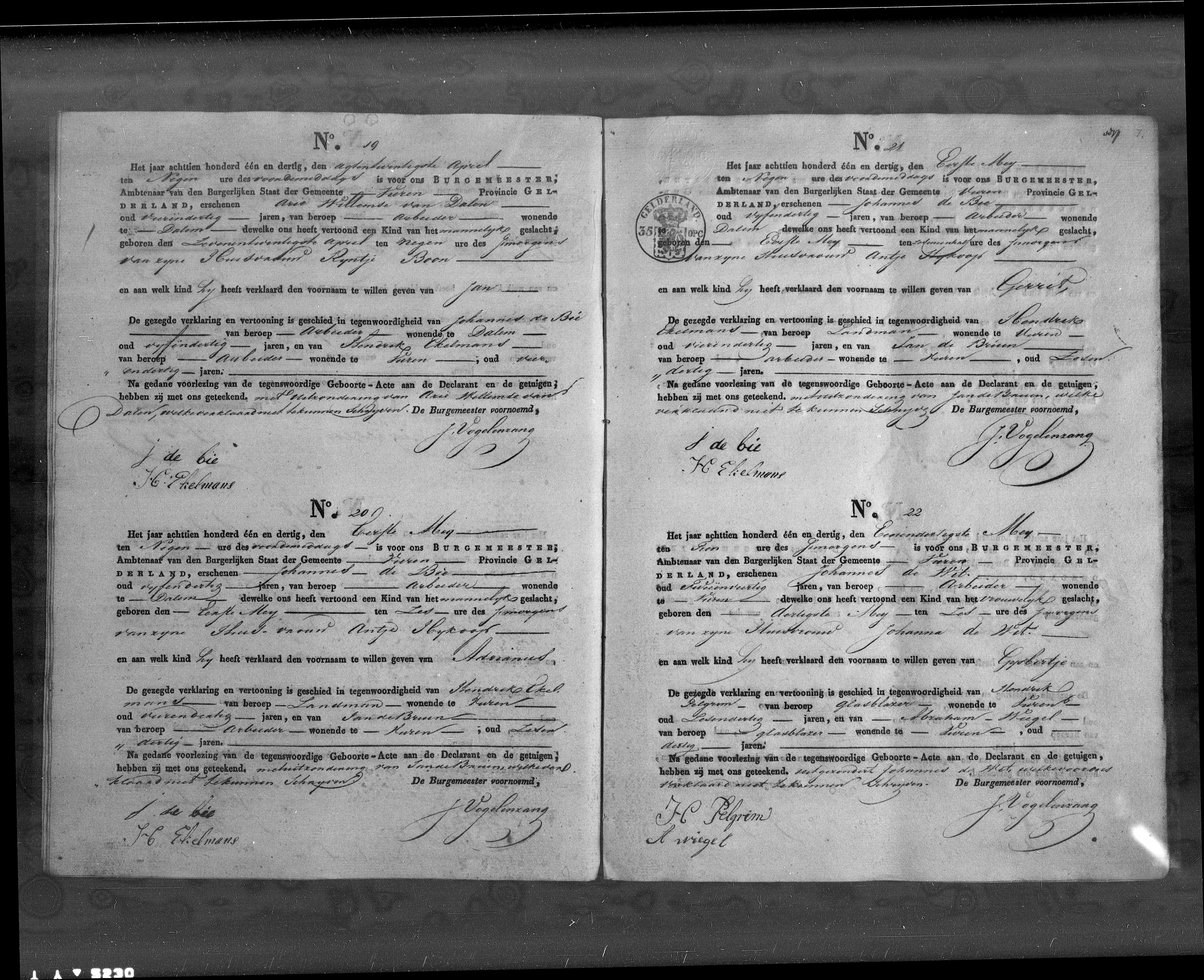 Adrianus & Gerrit de Bie geboorte