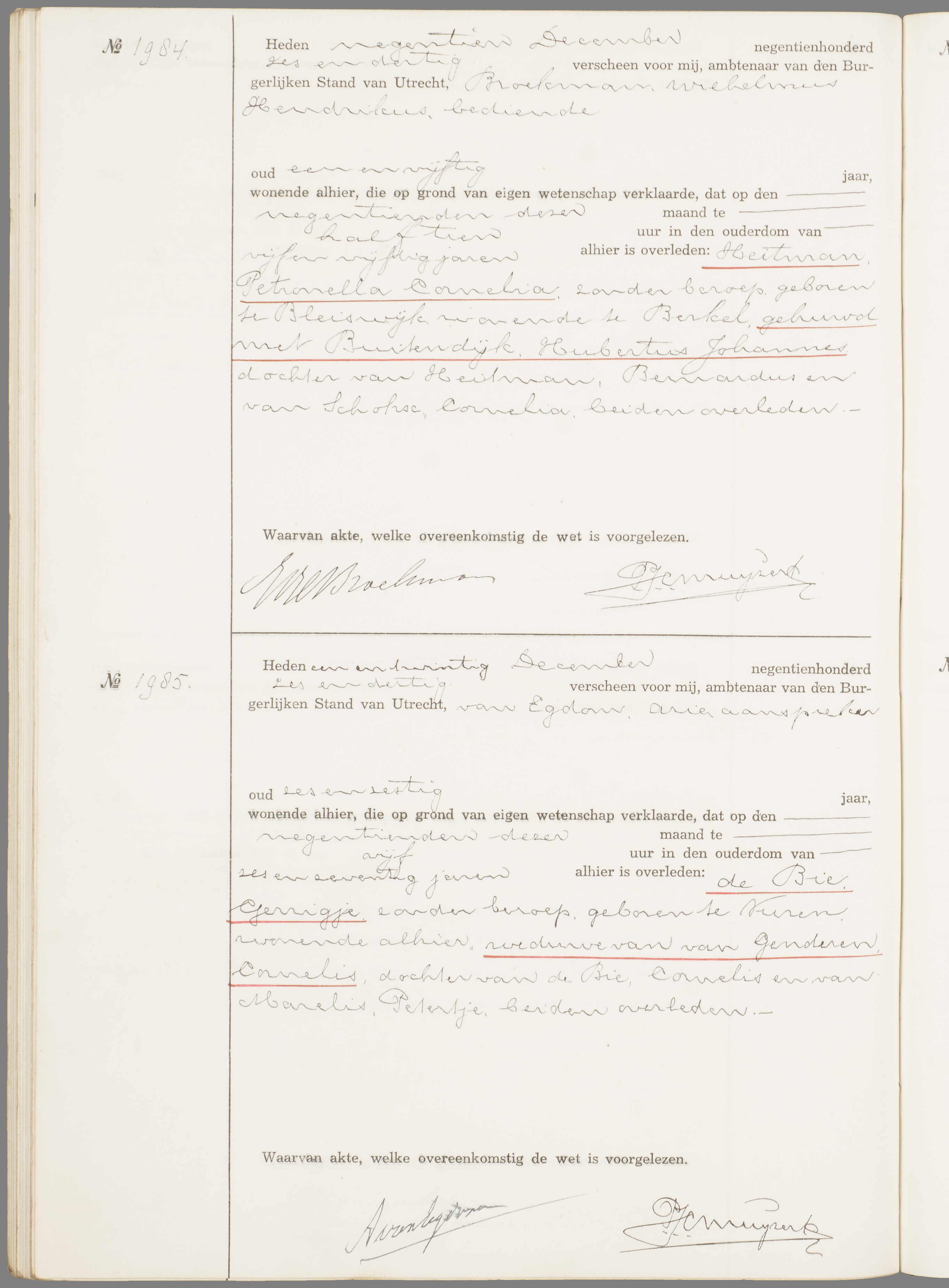 Gerrigje de Bie overlijden