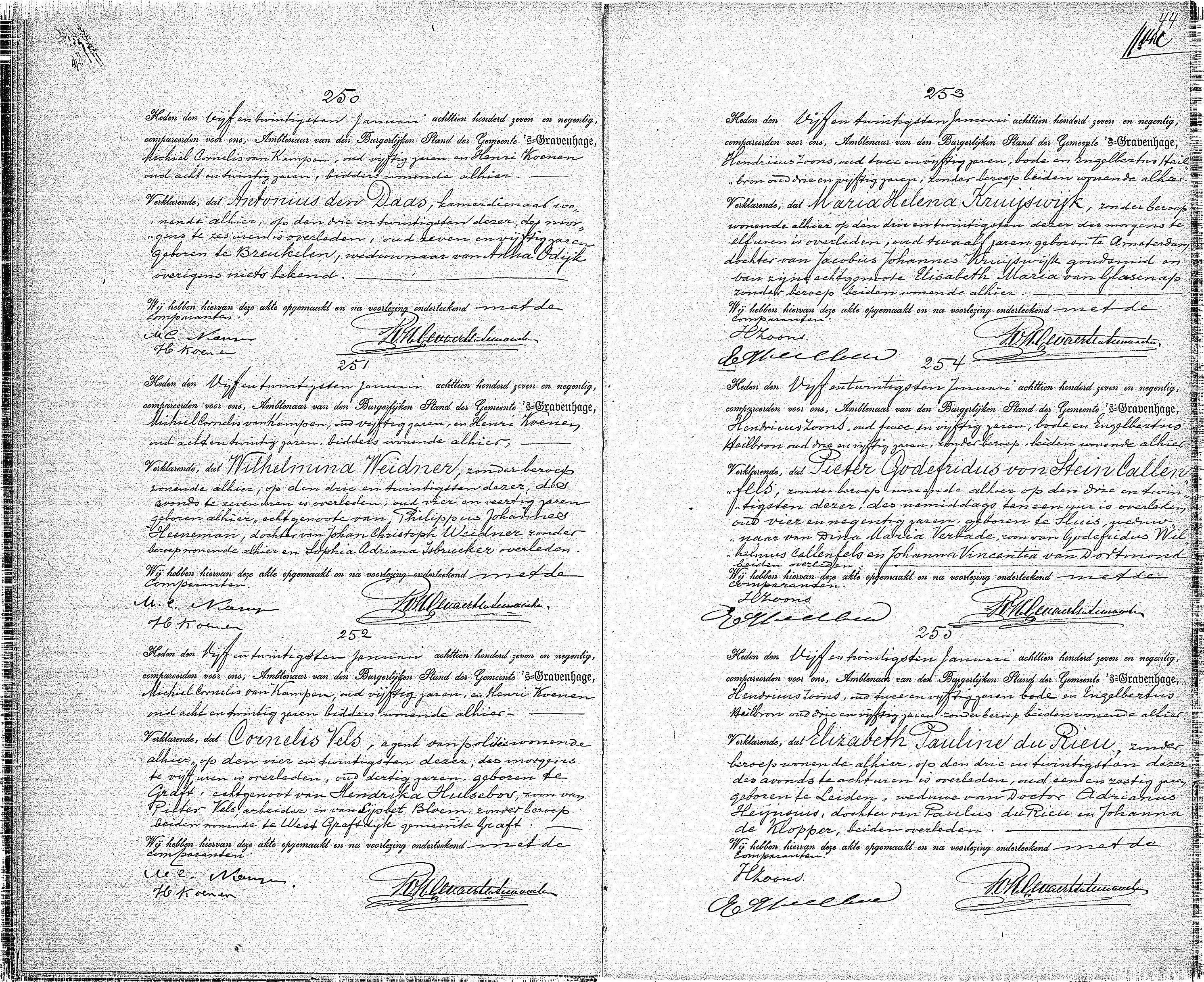 Pieter Godefridus von Stein Callenfels overlijden