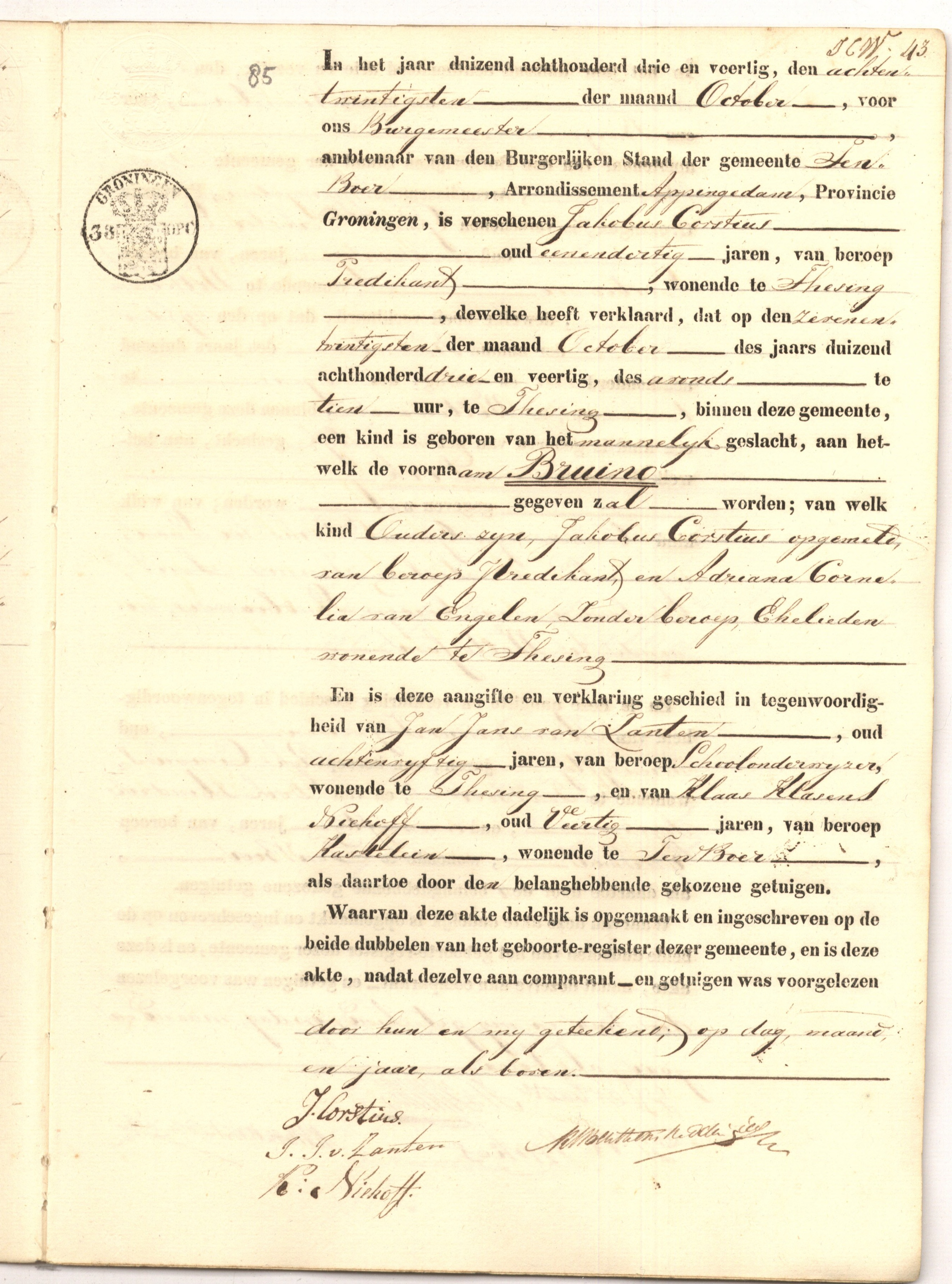 Bruino Corstius geboorte