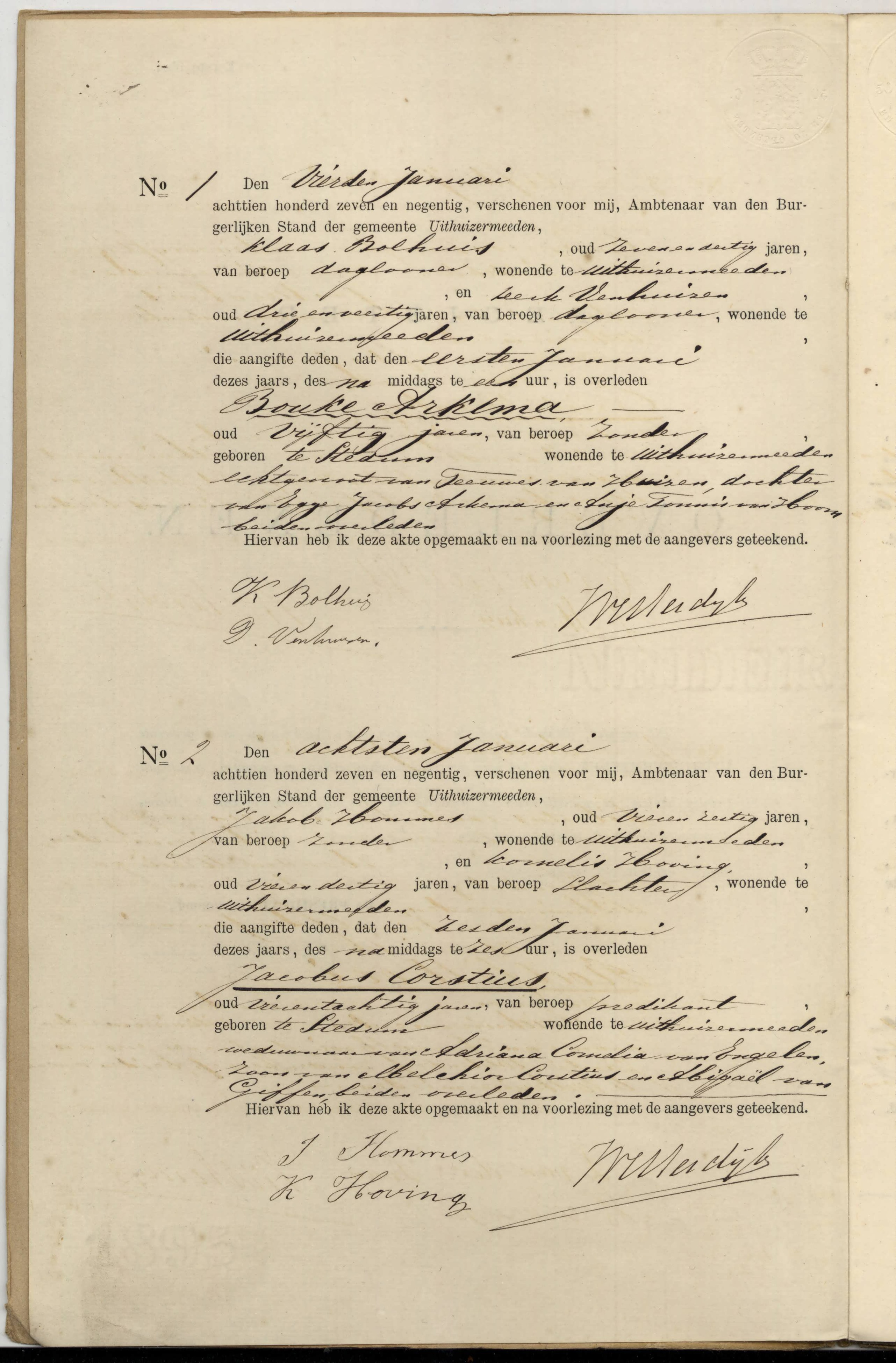 Jacobus Corstius overlijden