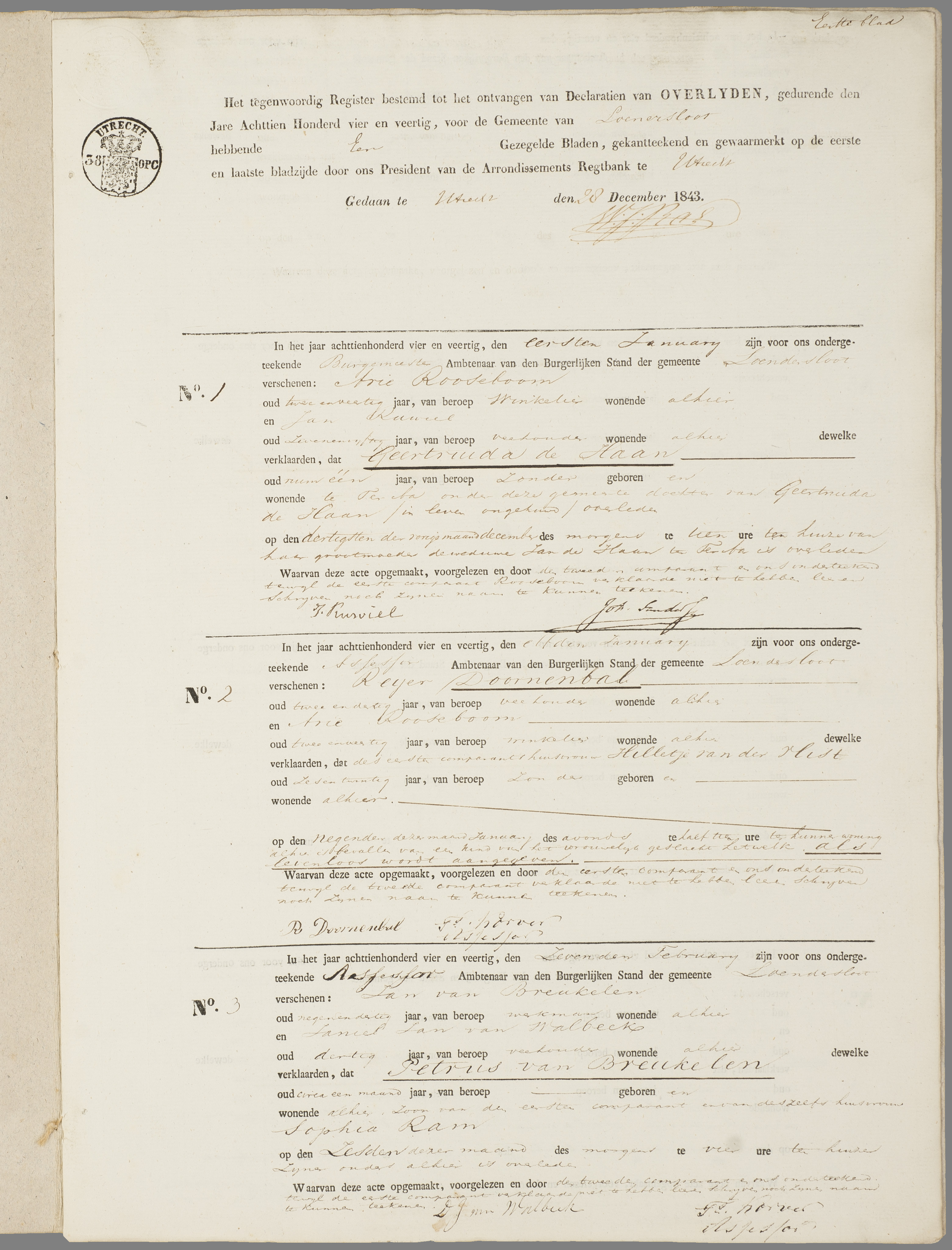 NN Doornenbal geboorte en overlijden