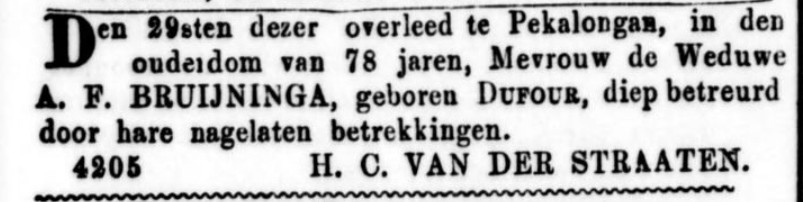 Anna Francina Dufour overlijden