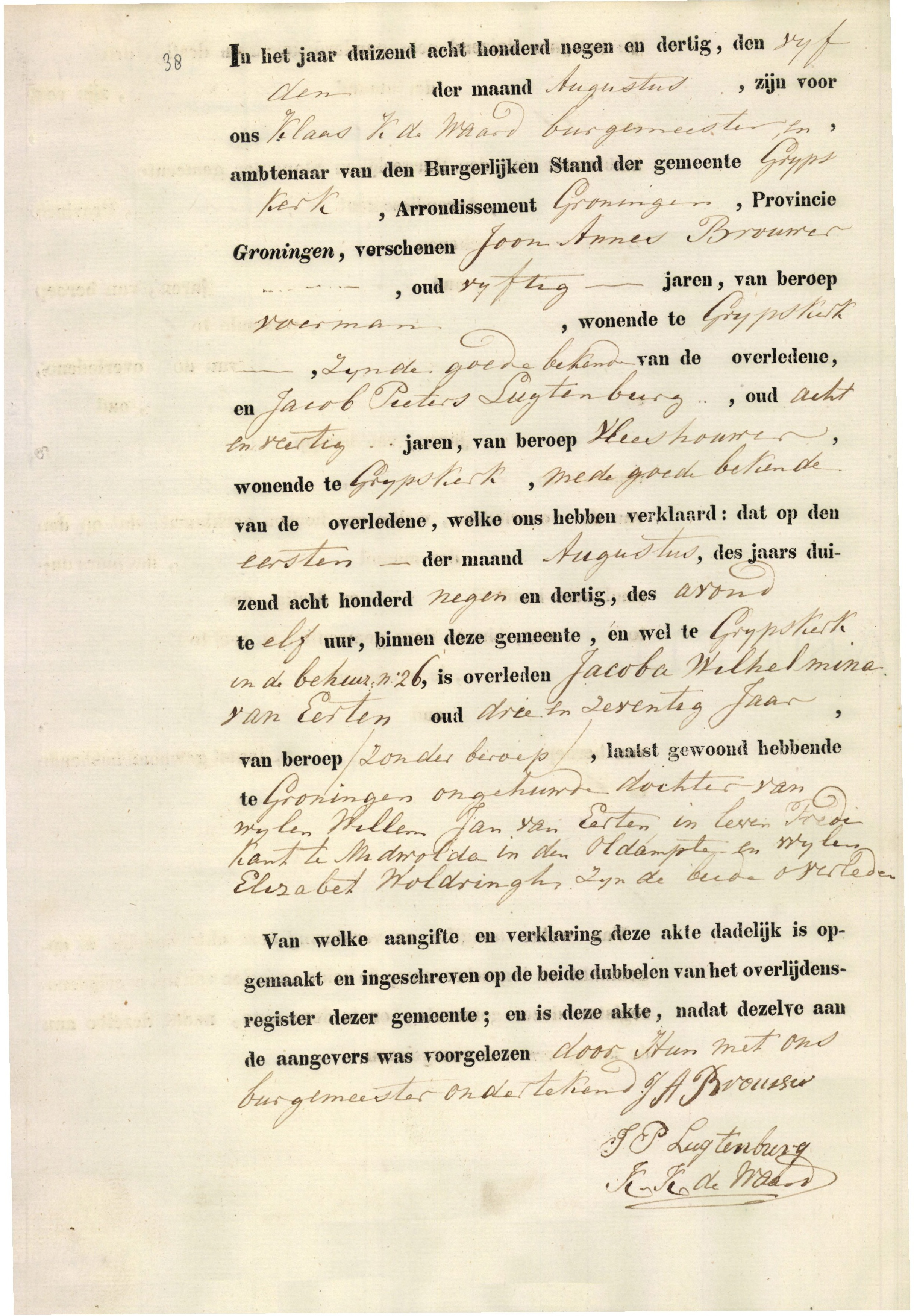 Jacoba Willemina van Eerten overlijden