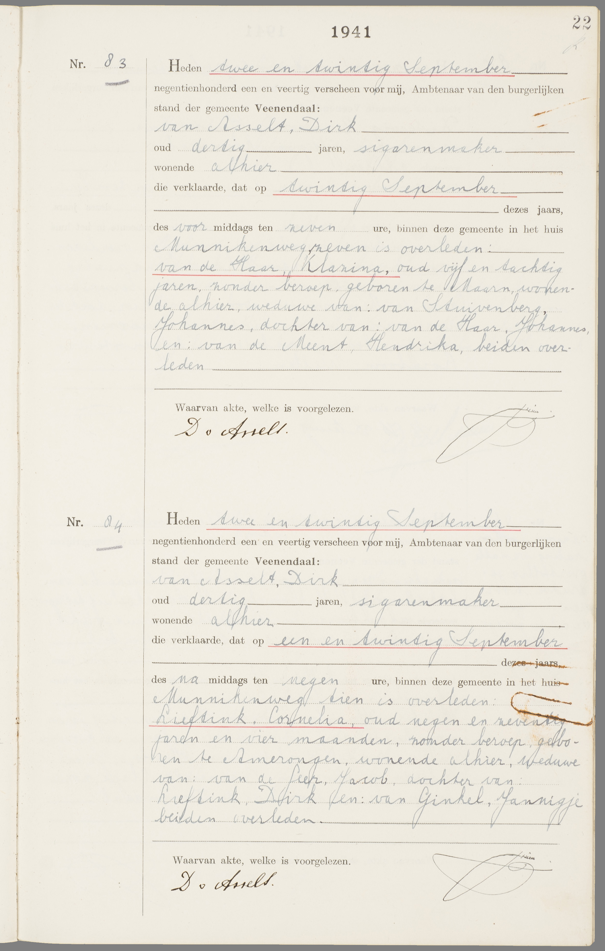 Klazina van de Haar overlijden