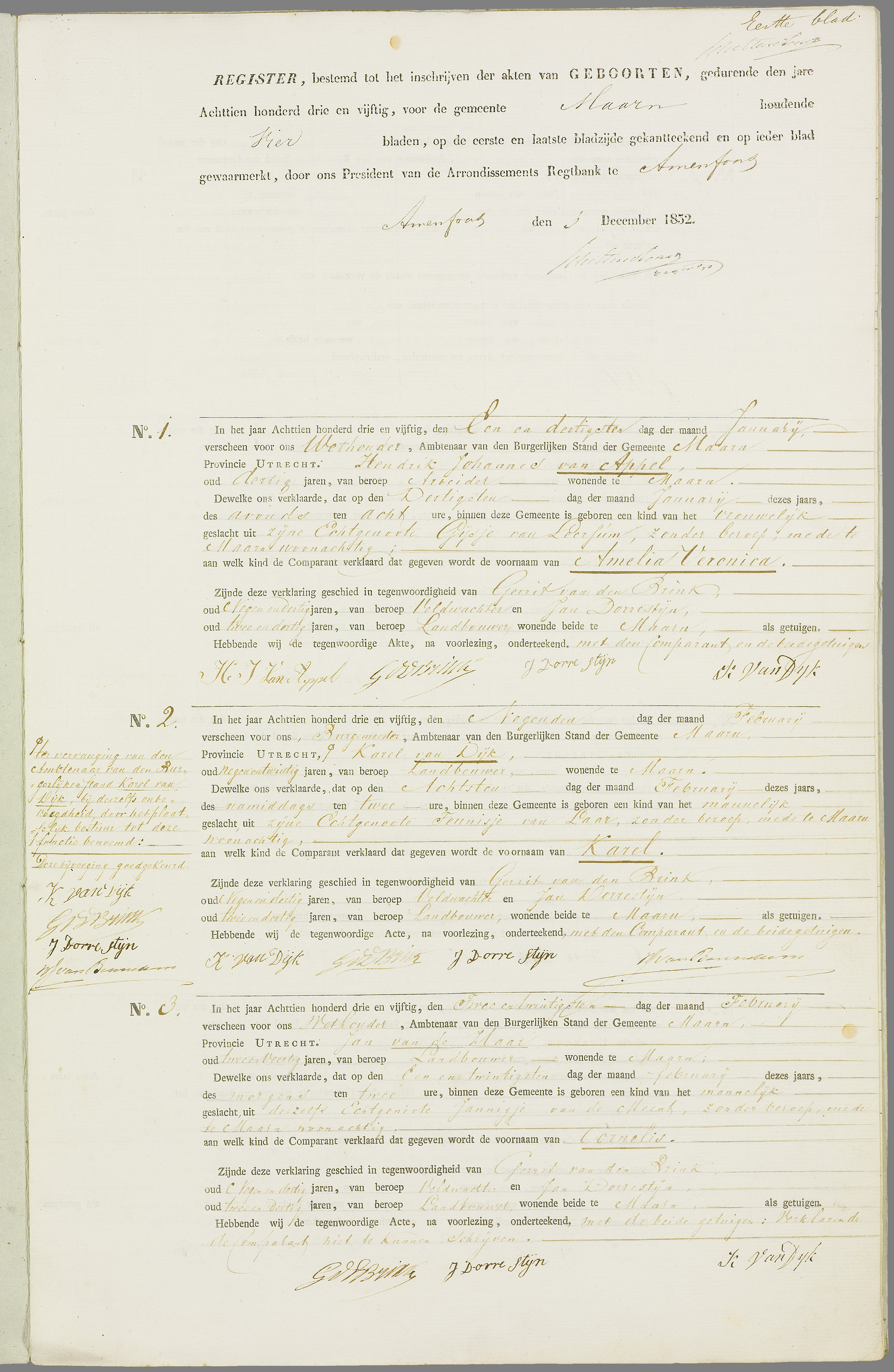 Cornelis van de Haar geboorte