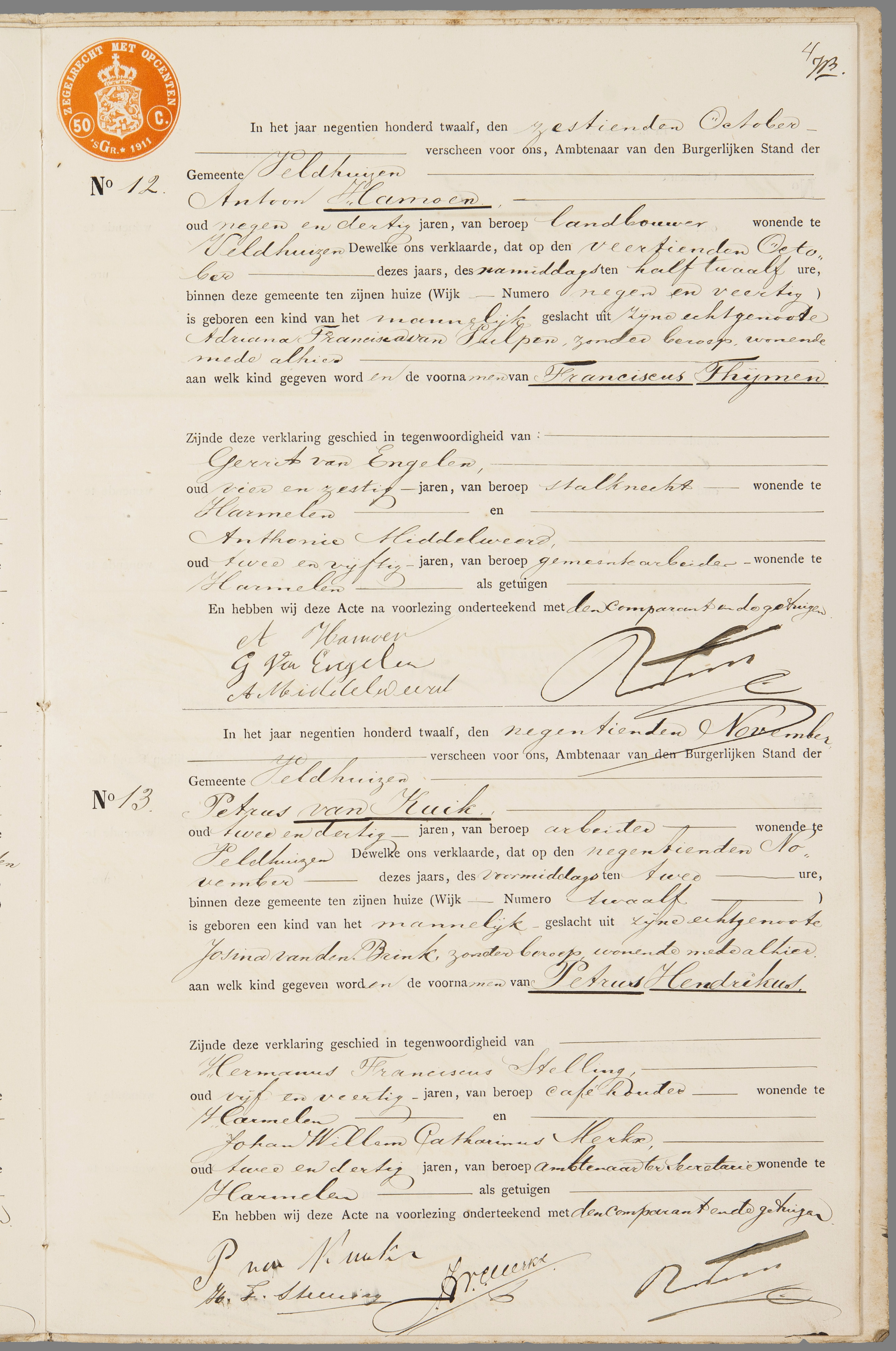 Franciscus Thijmen Hamoen geboorte