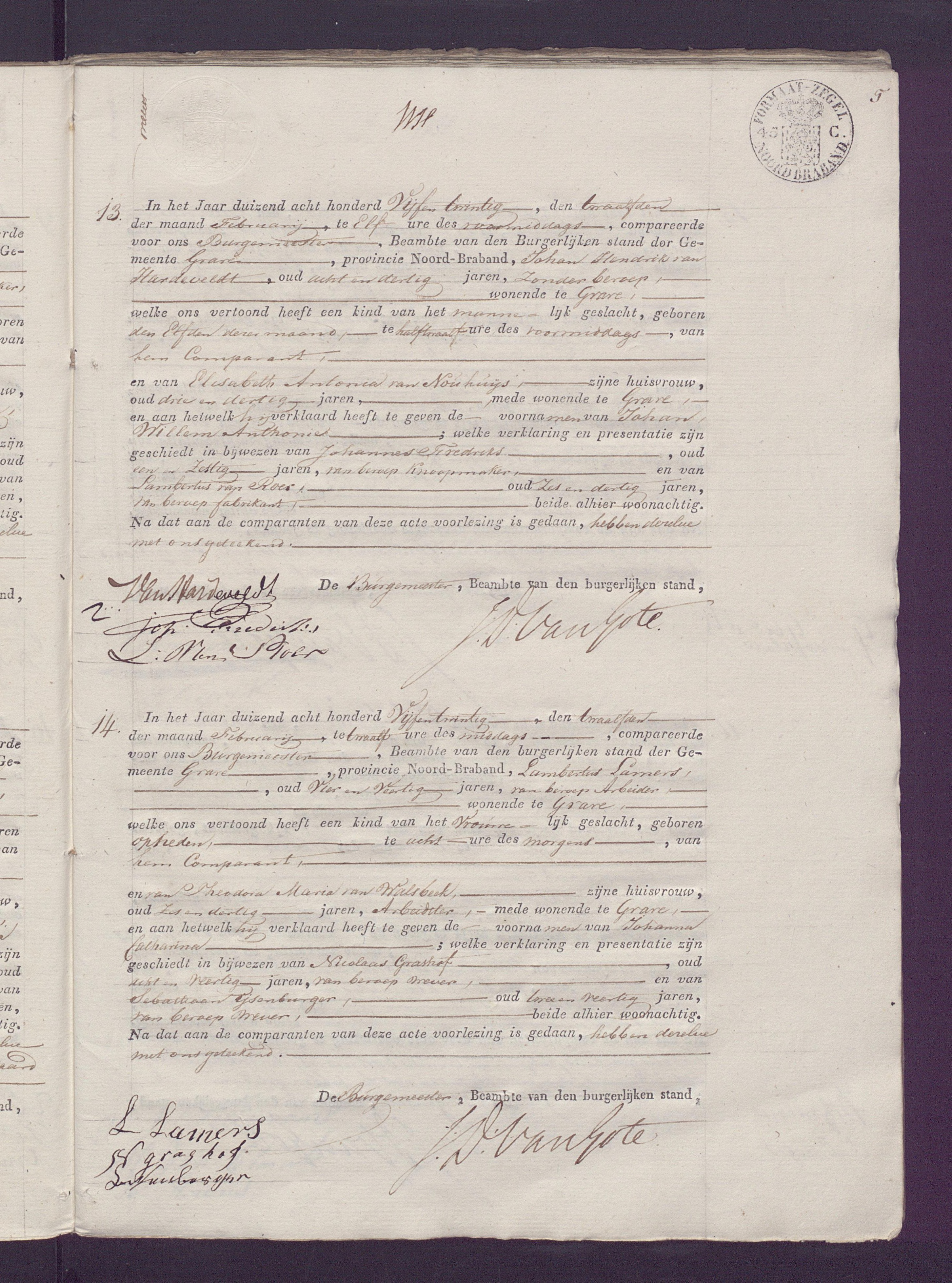 Johan Willem Anthonie van Hardeveldt geboorte