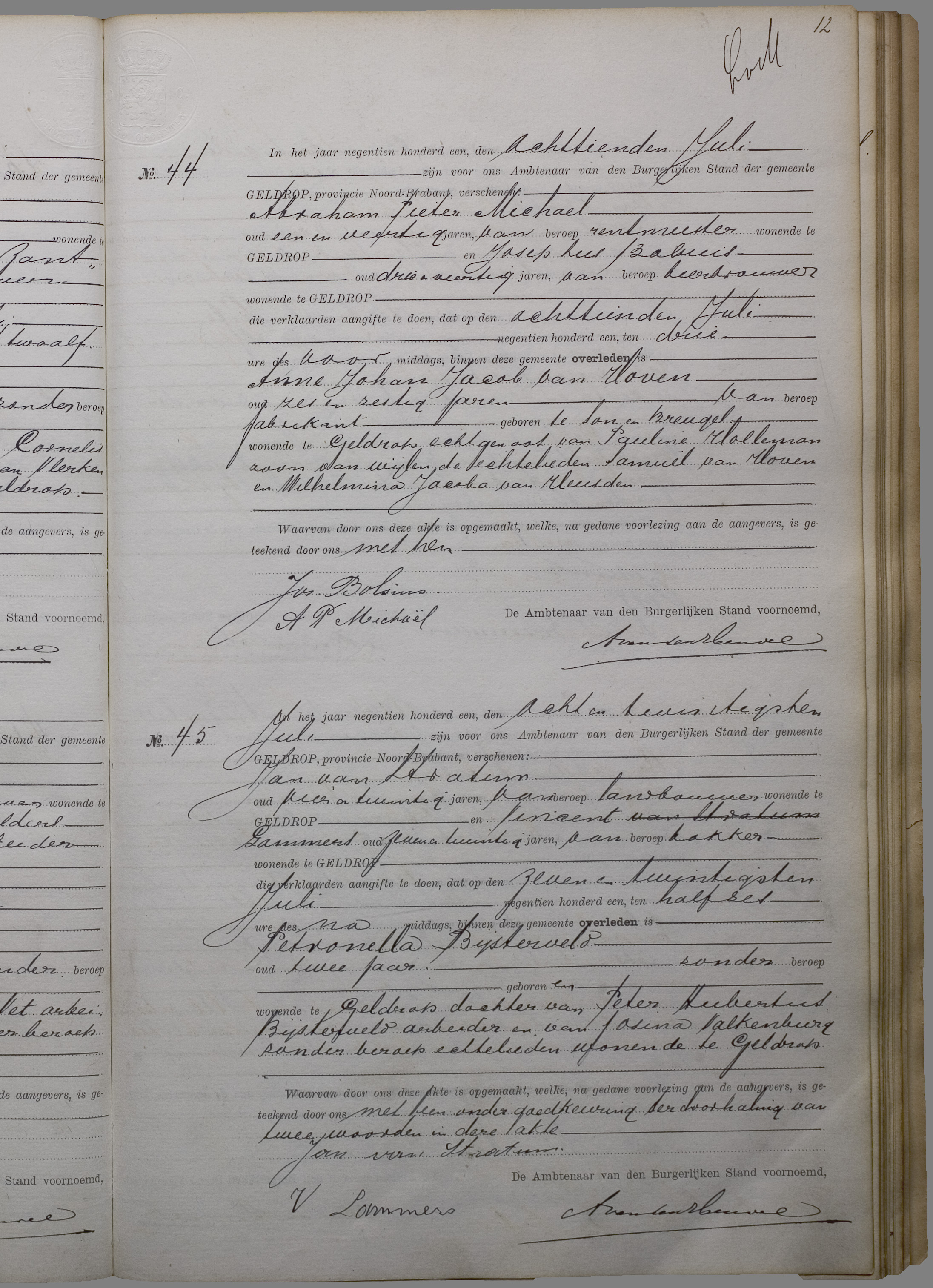 Anne Johan Jakob van Hoven overlijden