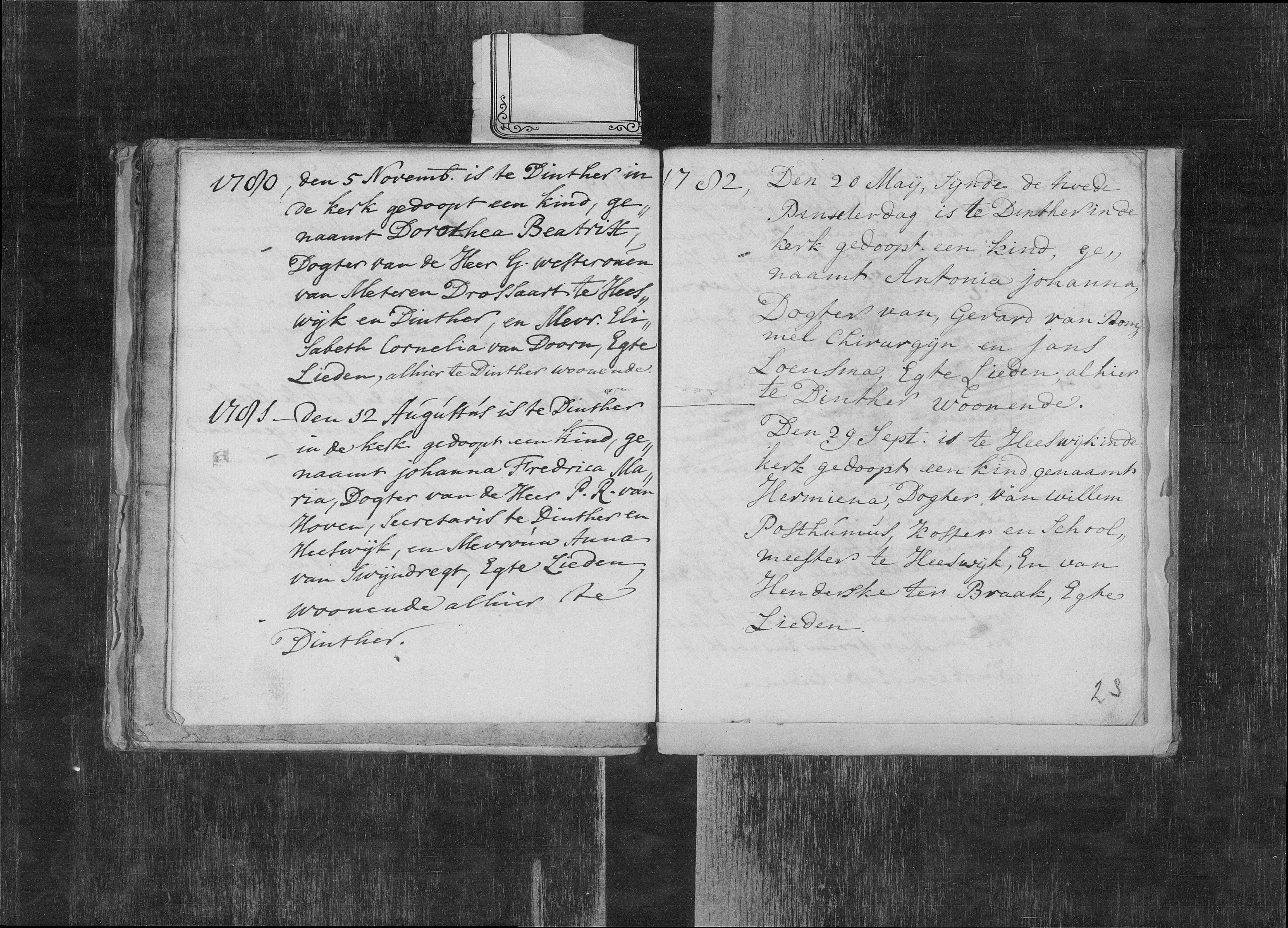 Johanna Fredrica Maria van Hoven doop