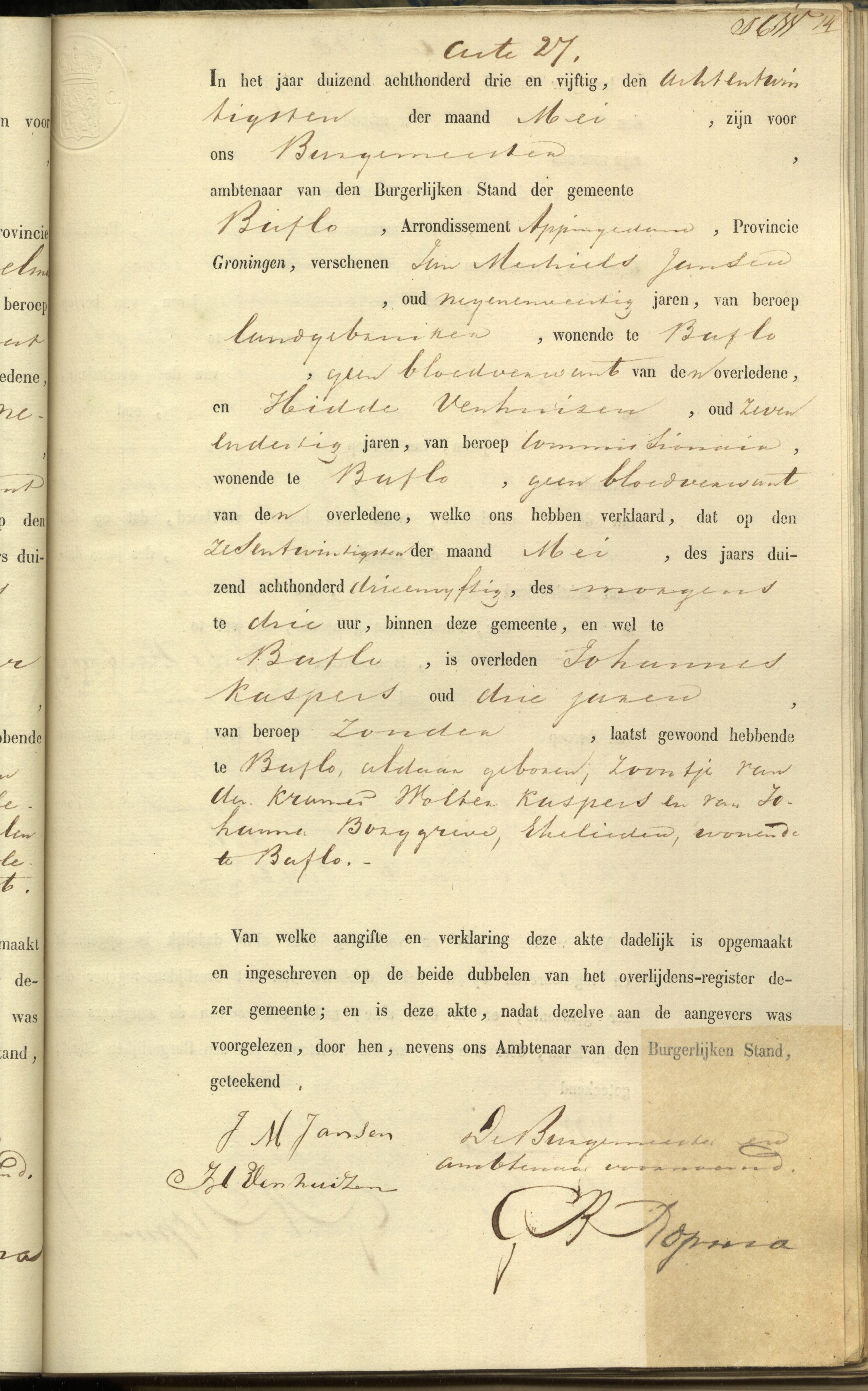 Johannes Kaspers overlijden