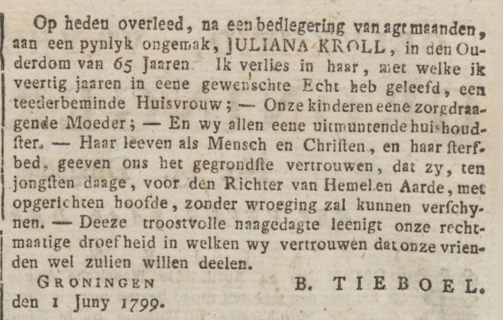 Juliana Kroll overlijden