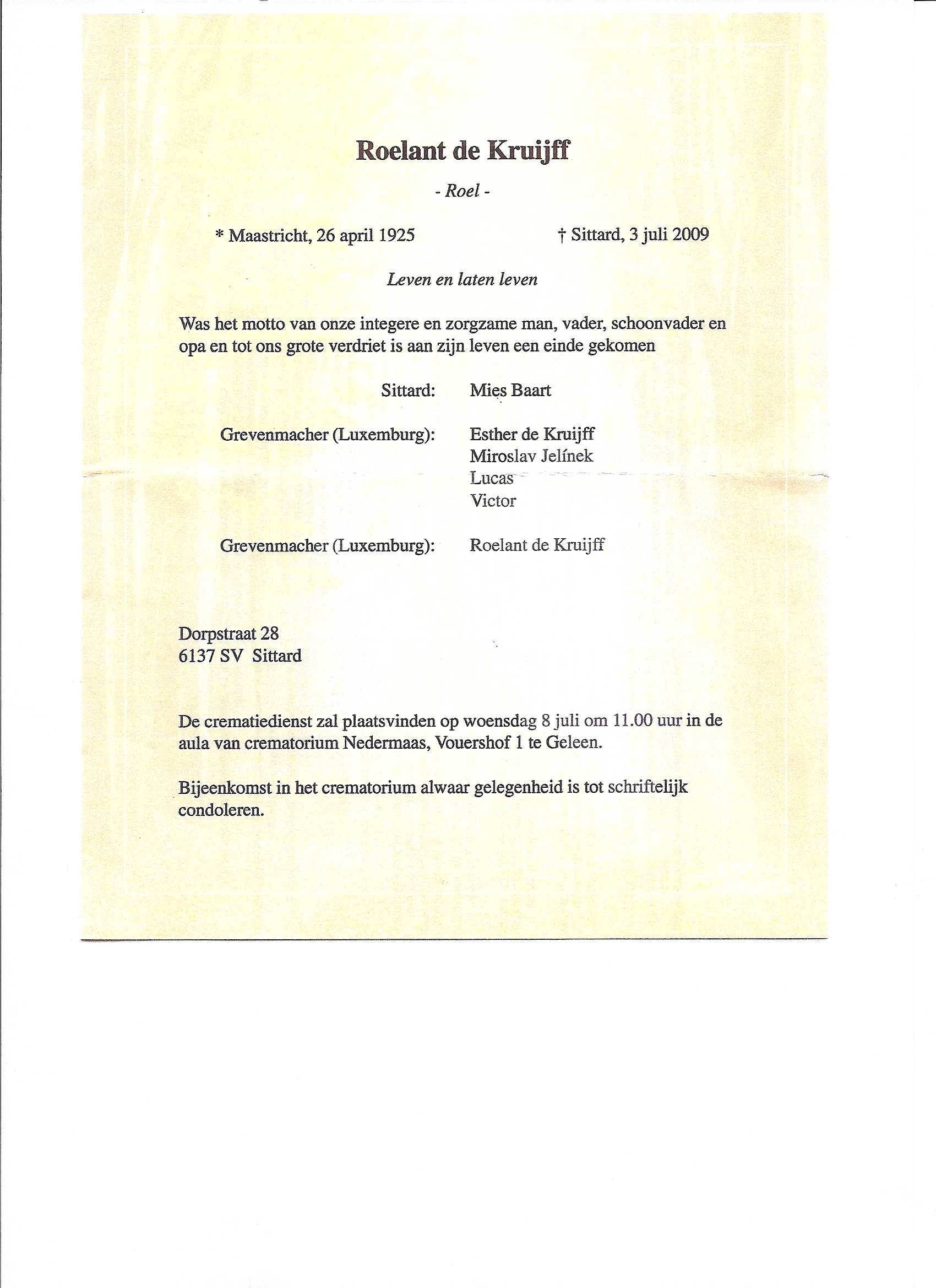 Roelant de Kruijff overlijden