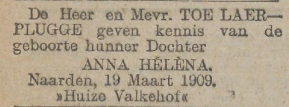 Anna Helena toe Laer geboorte