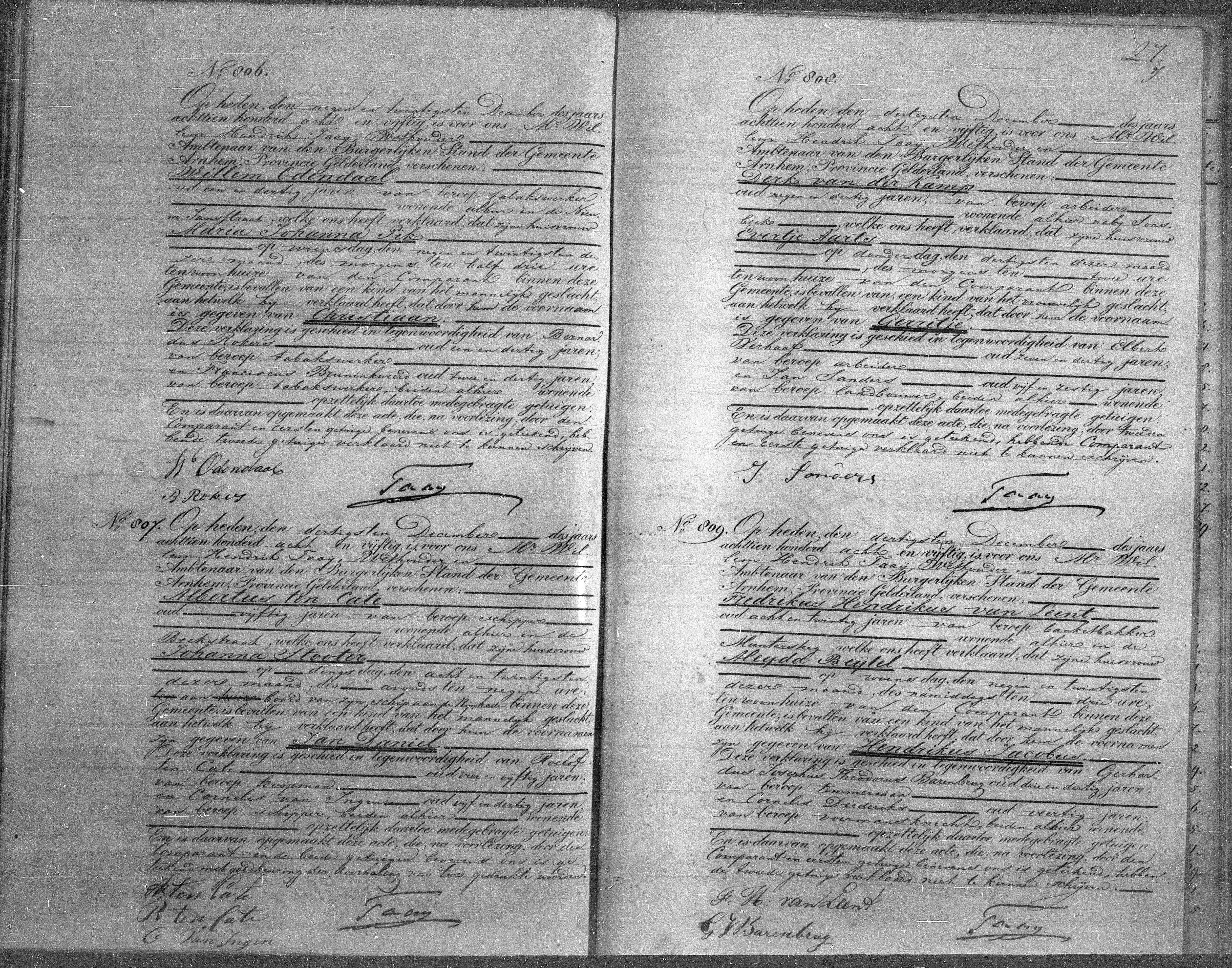 Hendrikus Jacobus van Leent geboorte