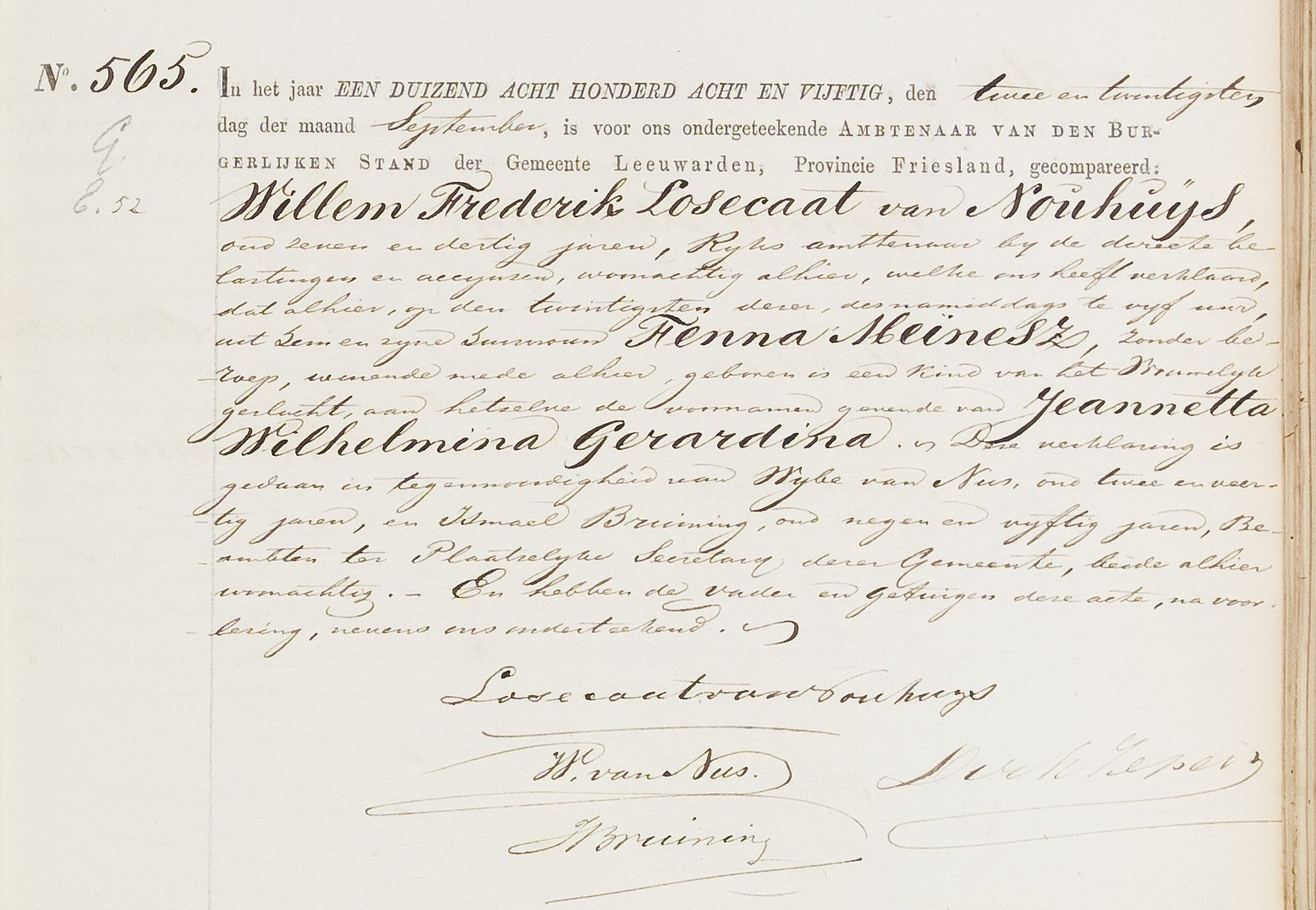 Jeanetta Wilhelmina Gerardina Losecaat van Nouhuijs geboorte