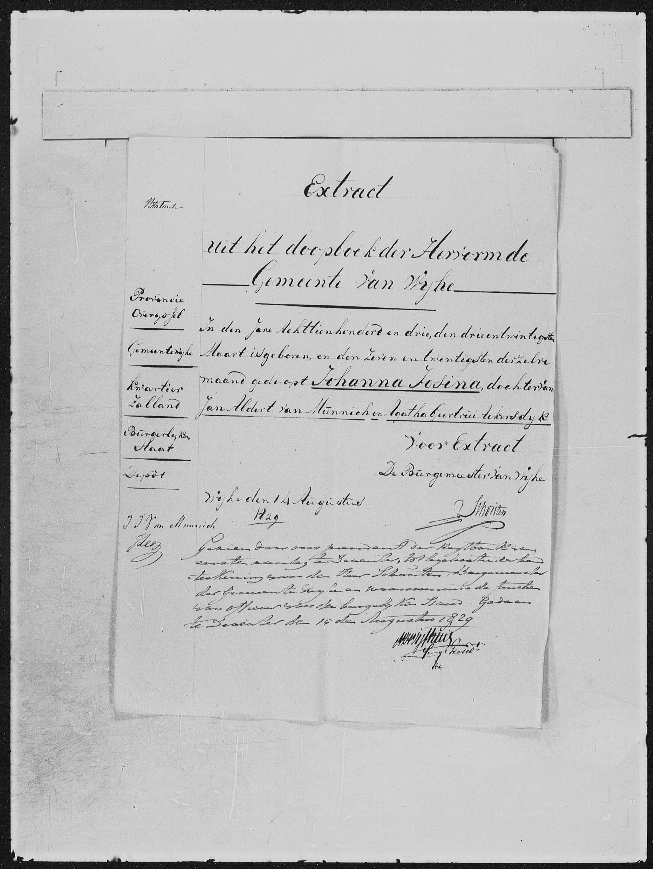 Johanna Josina van Munnich geboorte en doop