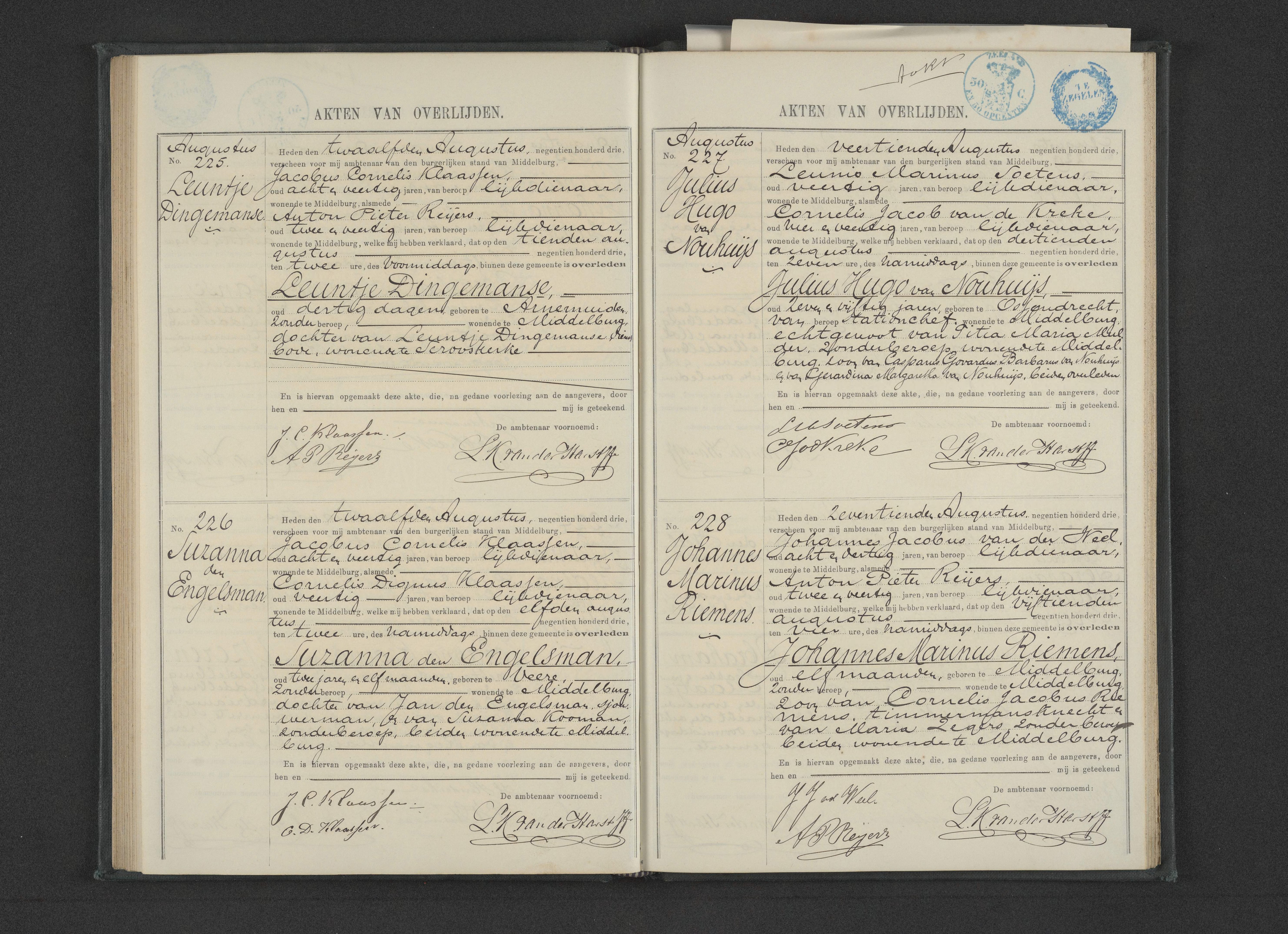 Julius Hugo van Nouhuijs overlijden