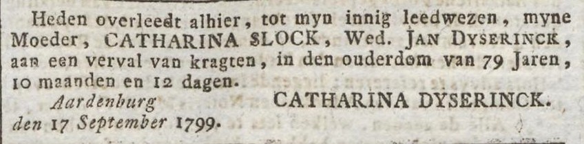 Catharina Slock overlijden