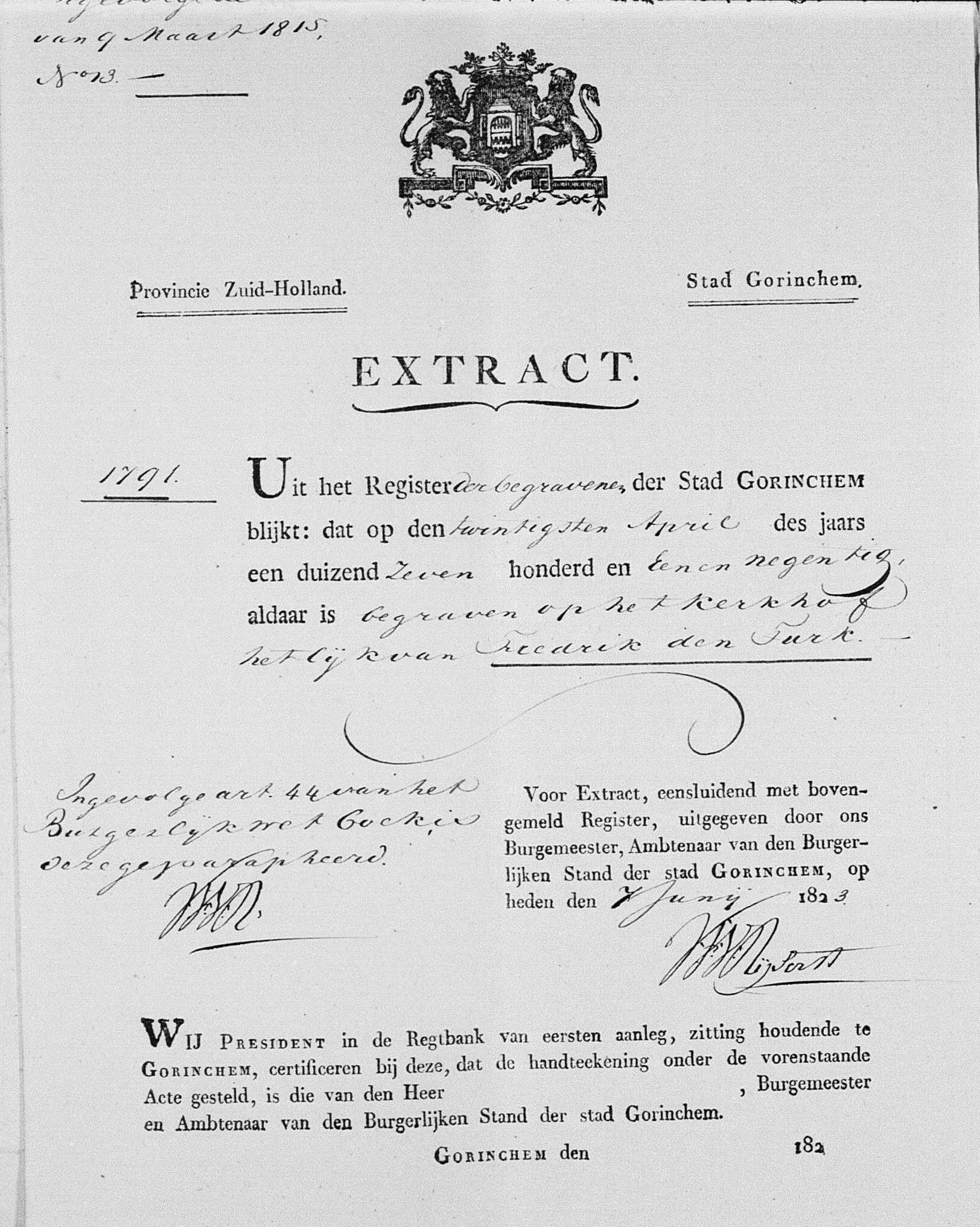 Fredrik den Turk begraven