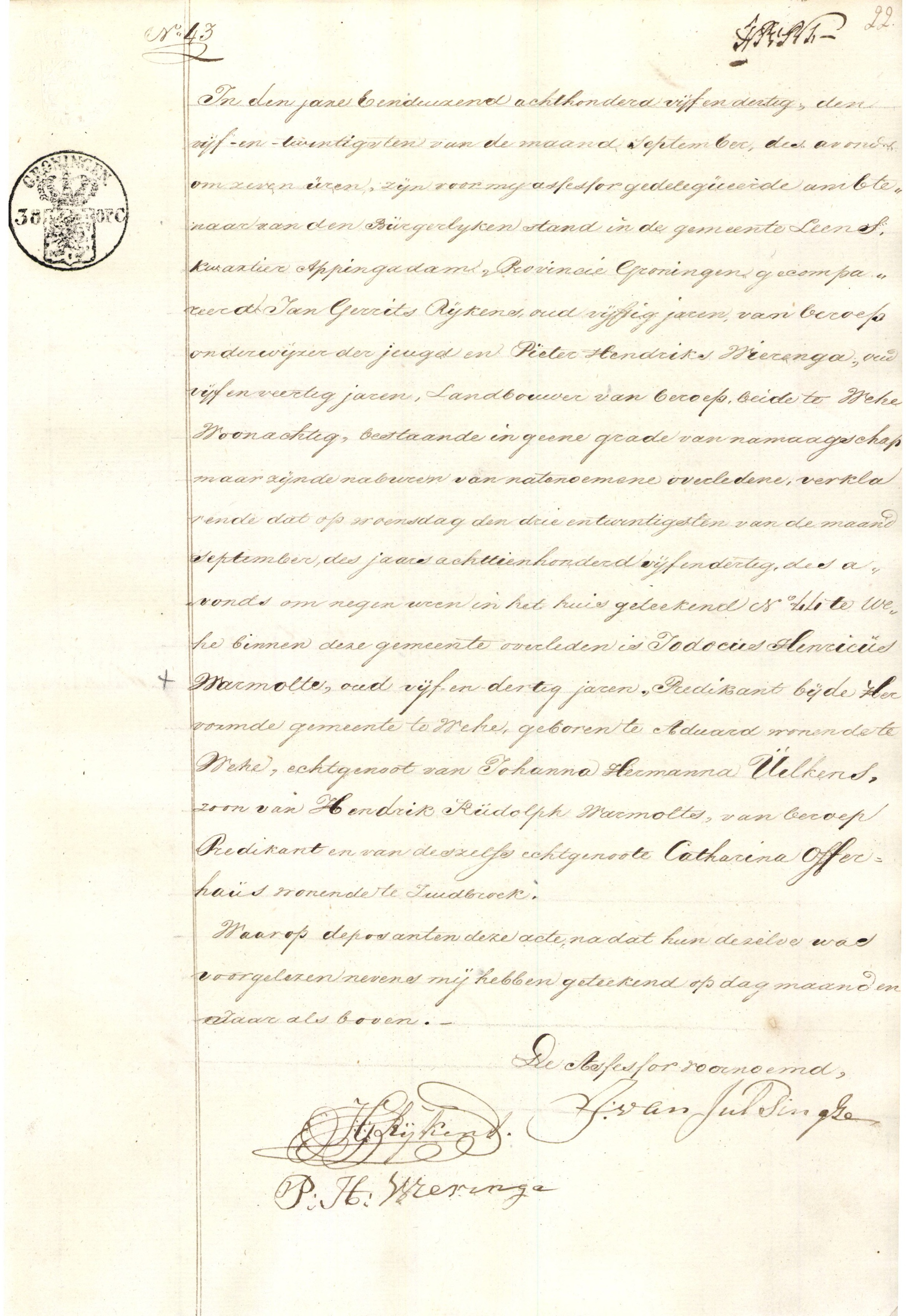Jodocus Henricus Warmolts overlijden