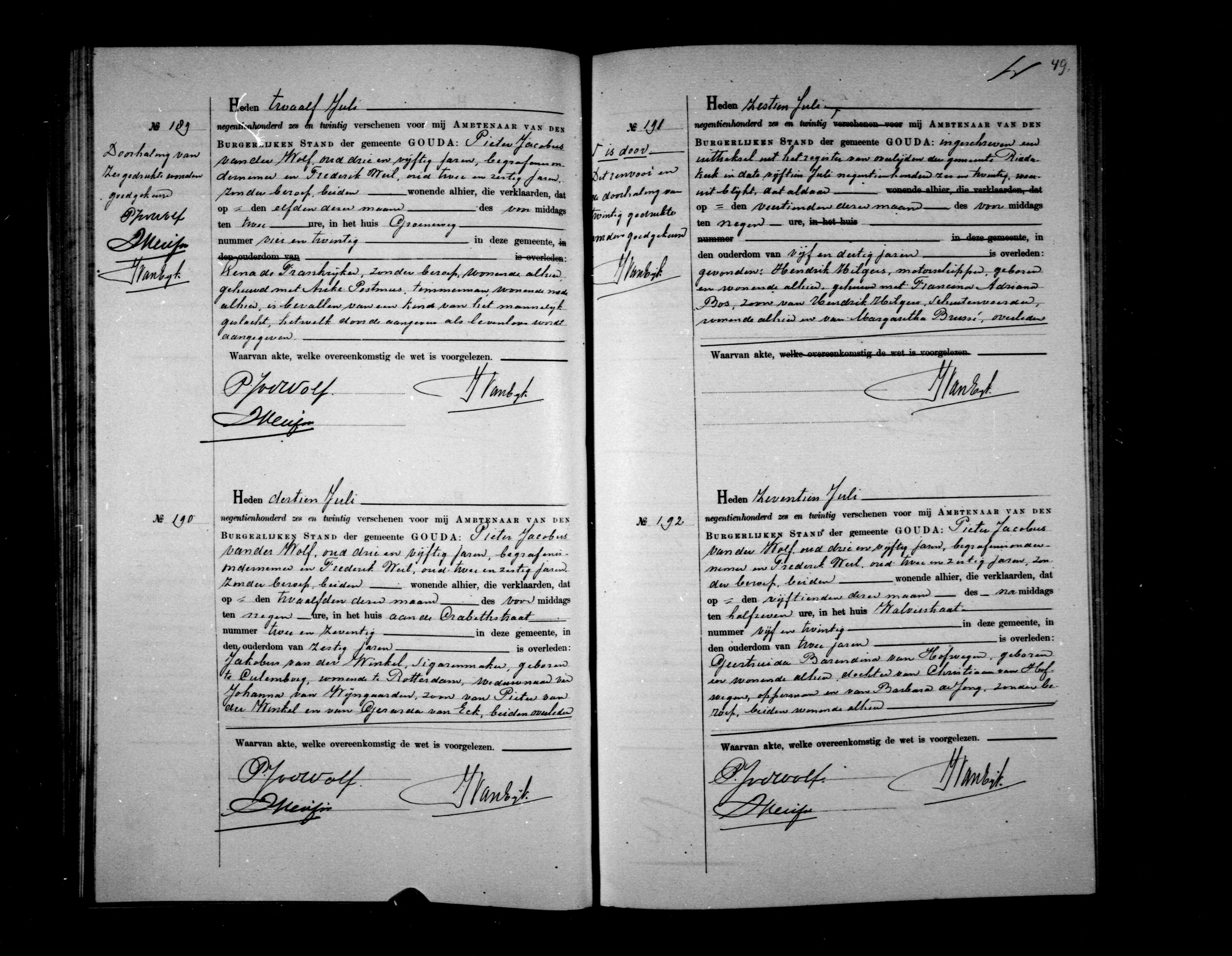 Jakobus van der Winkel overlijden